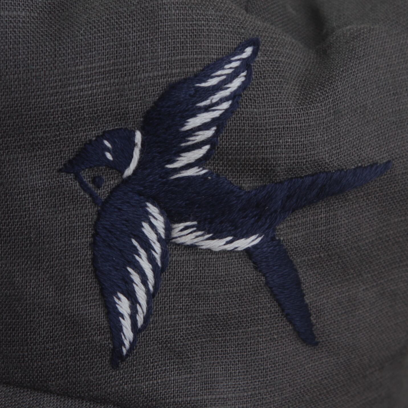 第二弾は通年合わせやすいカーキの綿麻に3色のつばめを刺繍しました。