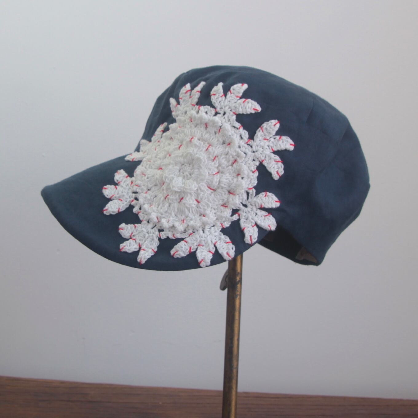 大きなブリムの定番キャスケット/ネイビーに赤糸のおばけドイリー SS-153
