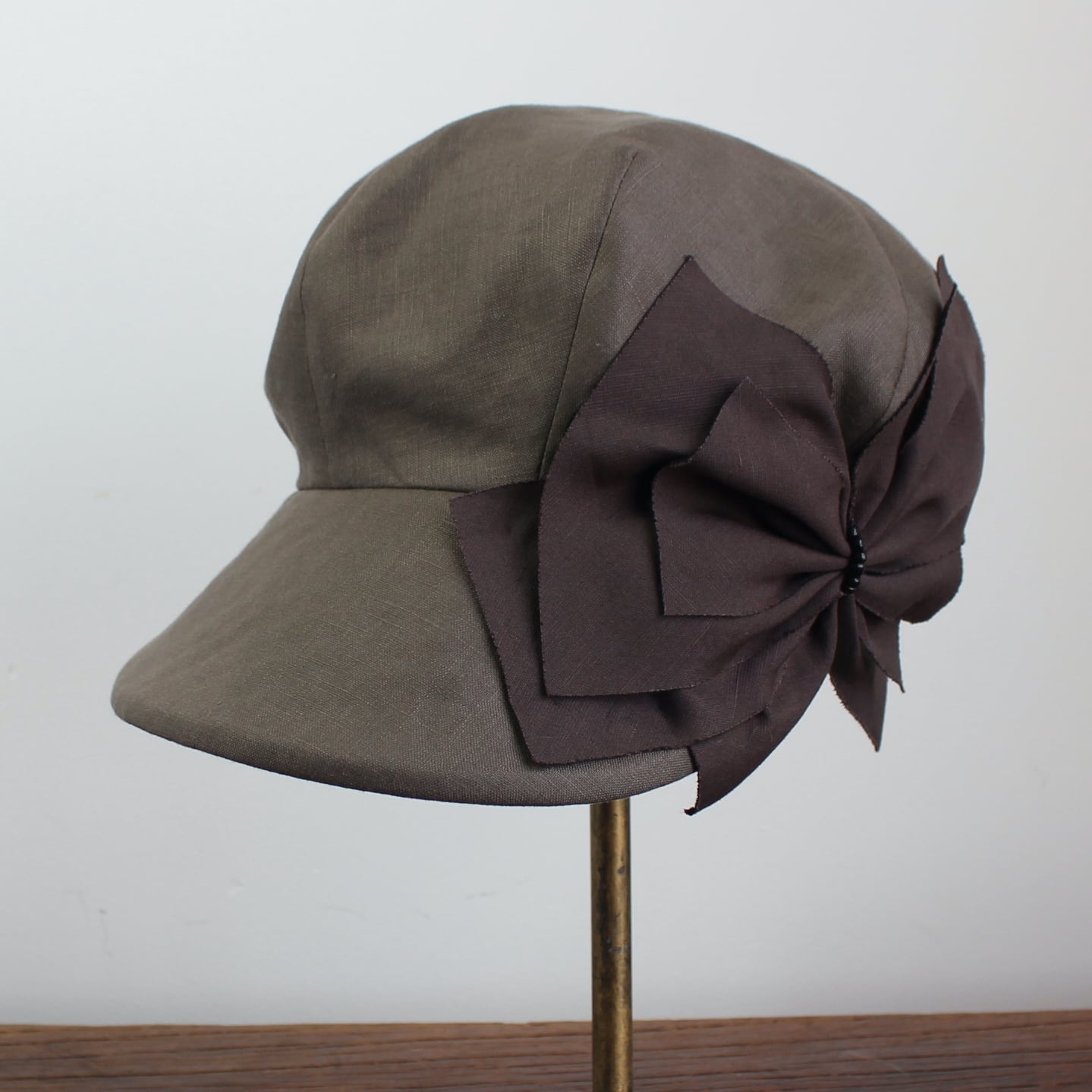 ベレーキャスケット4枚リボン/茶系カーキに茶色リボン SS-183