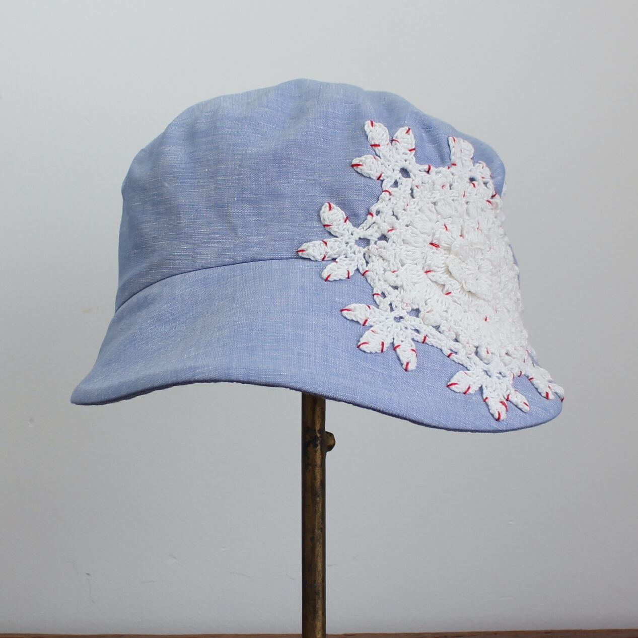 大きなブリムの定番キャスケット/青タンガリーに赤糸のおばけドイリー SS-161